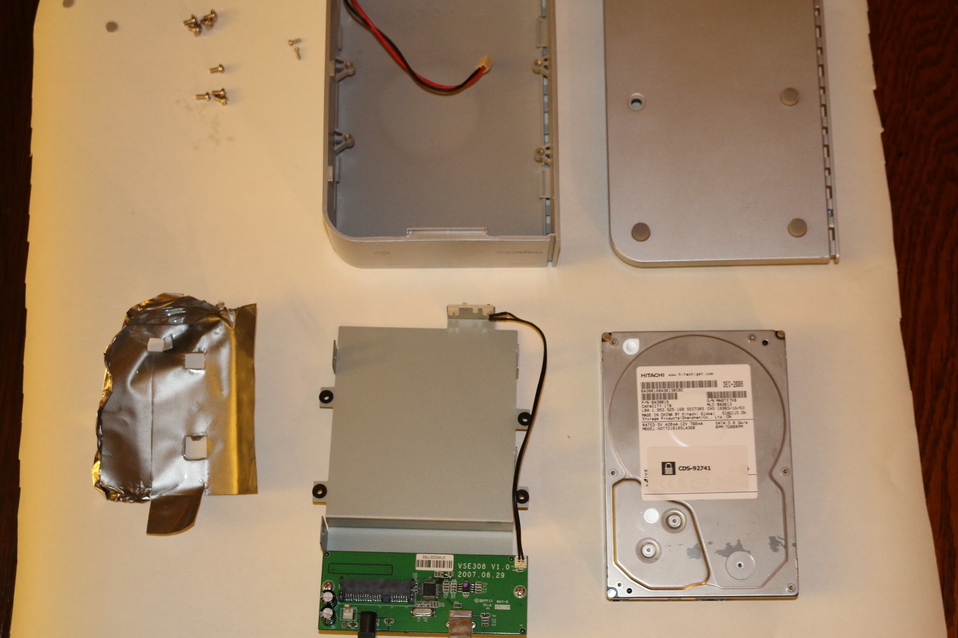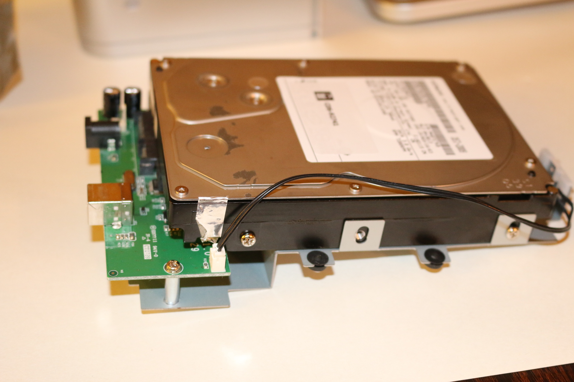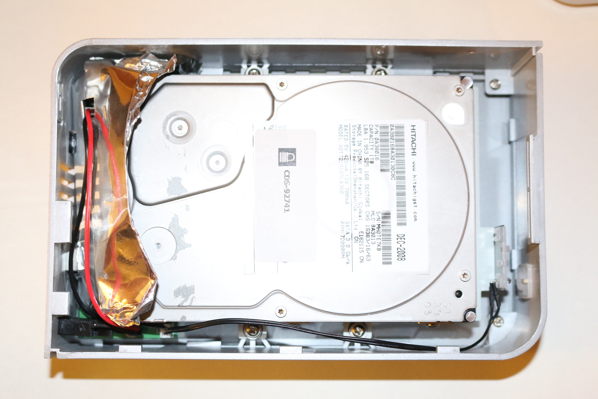 Drive removed from enclosure, before removing anti-static shielding.