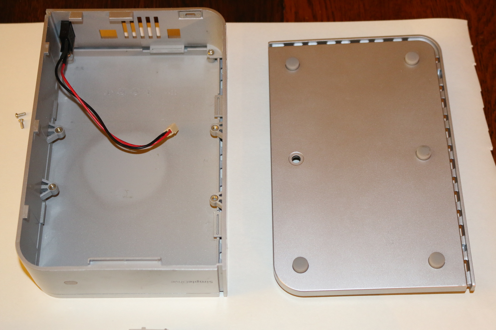 Shot of both cheap plastic molded pieces of enclosure.